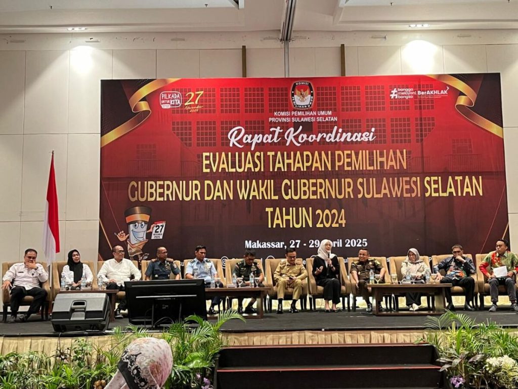 Hal itu diungkapkan oleh Sekretaris Daerah Provinsi Sulawesi Selatan, Jufri Rahman, saat membacakan Sambutan Gubernur Sulsel pada Rapat Koordinasi Evaluasi Tahapan Pemilihan Gubernur dan Wakil Gubernur Sulsel Tahun 2024 di Hotel Claro, Senin, 28 April 2025.